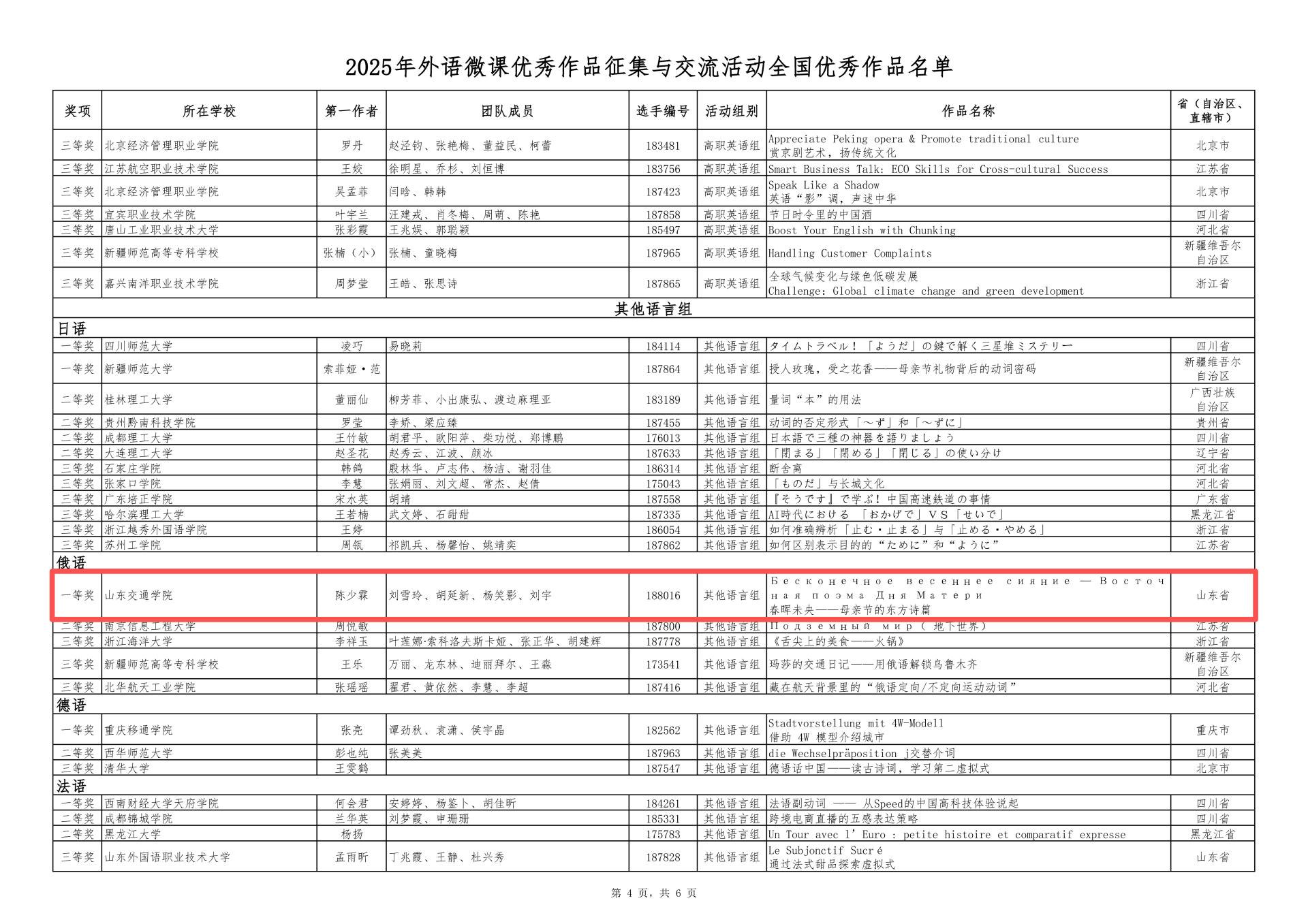 该项赛事已入选《全国普通高校教师教学发展指数》教师教学竞赛目录,是全国外语教育领域具有广泛影响力的权威赛事。本次活动由高等教育出版社、全国高校教师网络培训中心与《中国外语》编辑部联合主办,活动自今年3月启动,历时半年,共收到来自清华大学、西安交通大学、长安大学等全国450所院校的1190件参赛作品,最终评选出全国一等奖29项,其中俄语组一等奖仅我校1项。