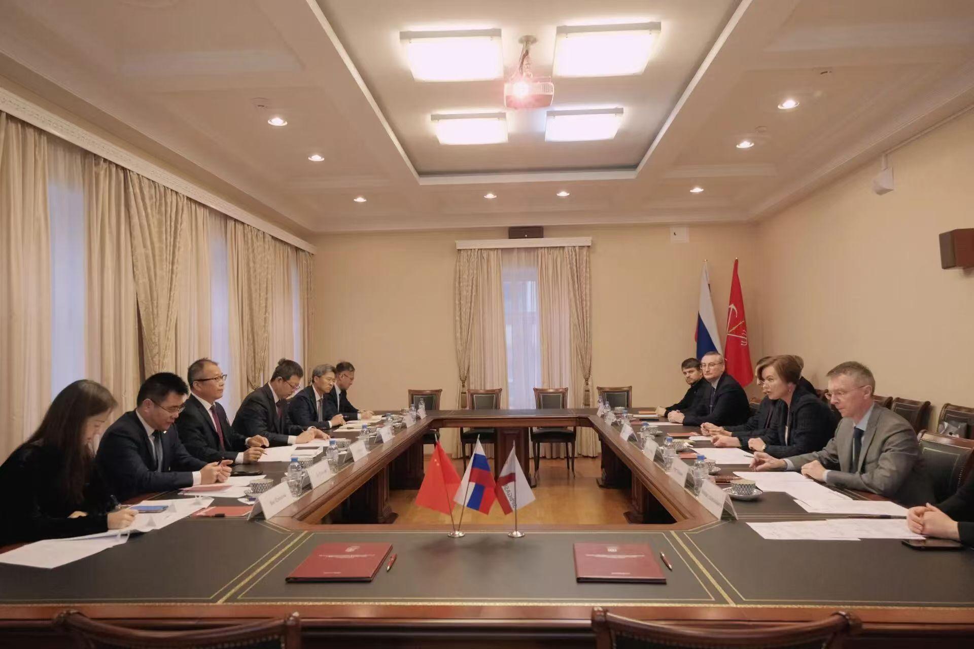 在俄罗斯圣彼得堡市,代表团首站赴圣彼得堡国立建筑大学访问,与第一副校长格罗文娜·思维特兰娜、教学副校长米哈伊洛夫·谢尔盖、科研副校长科罗廖夫·叶夫根尼等校方领导举行工作会谈,并签署《山东交通学院与圣彼得堡国立建筑大学友好合作备忘录》。双方就聚焦新时代中俄教育合作新机遇,就推进土木工程、交通运输等两校具有契合度专业的学生联合培养、共建工科专业国际认知实习平台、扩大师生双向交流规模等议题达成多项共识,并与该校汽车与道路学院围绕教师联合科研、共建实验室等议题进行技术对接。