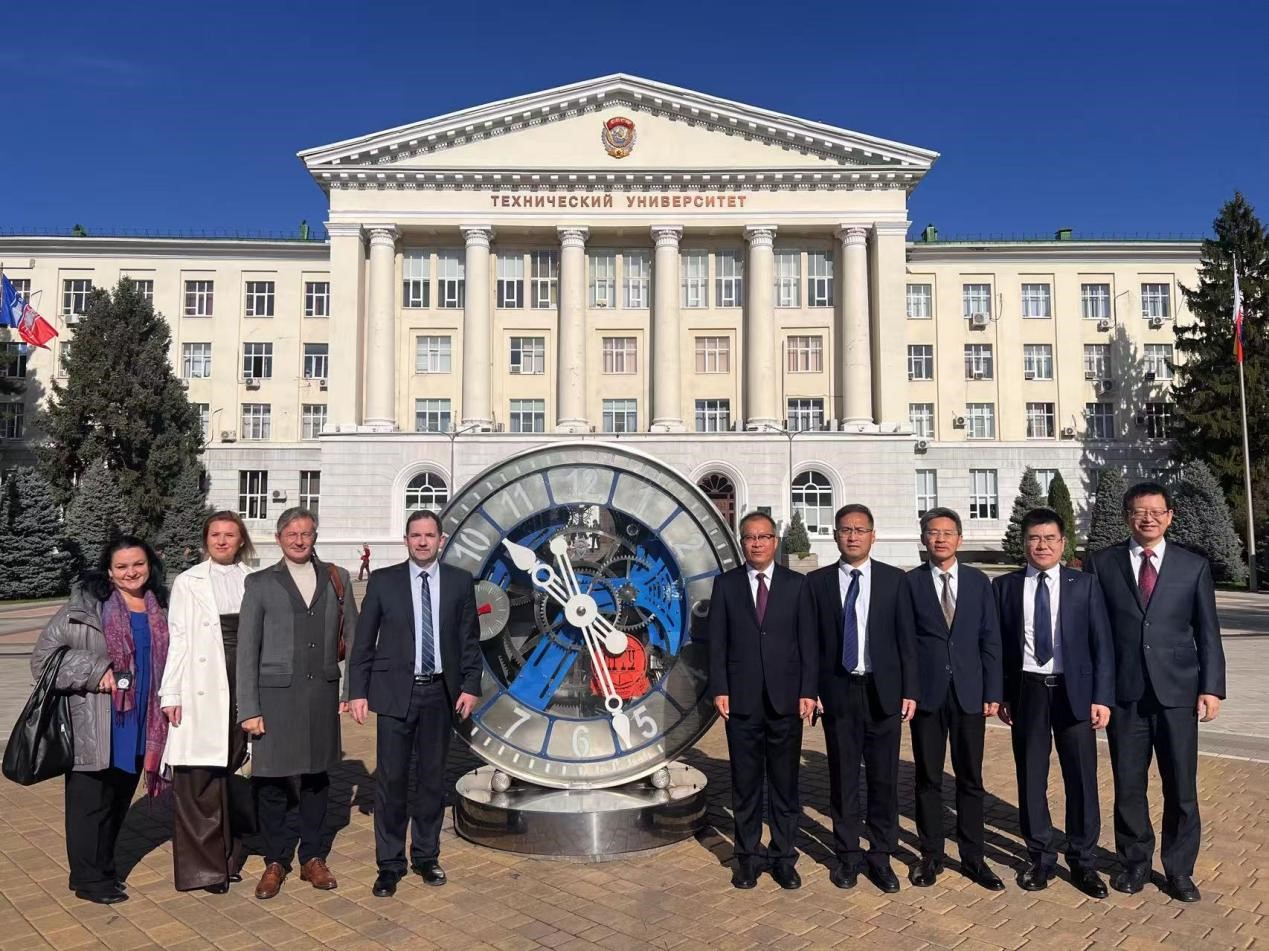在俄罗斯顿河畔罗斯托夫市,访问团应邀出席顿河国立技术大学建校95周年校庆系列活动。李贞涛代表我校向顿河国立技术大学表示祝贺。他指出,自两校合作共建顿河学院以来,在高水平国际化工程人才培养、本硕博贯通育人体系构建、汉语推广与中俄青年人文交流、文明互鉴深化、友好省州及国际友城关系促进、区域经贸合作与民间外交拓展等方面取得显著成效,为深化中俄教育合作与战略协作作出积极贡献。