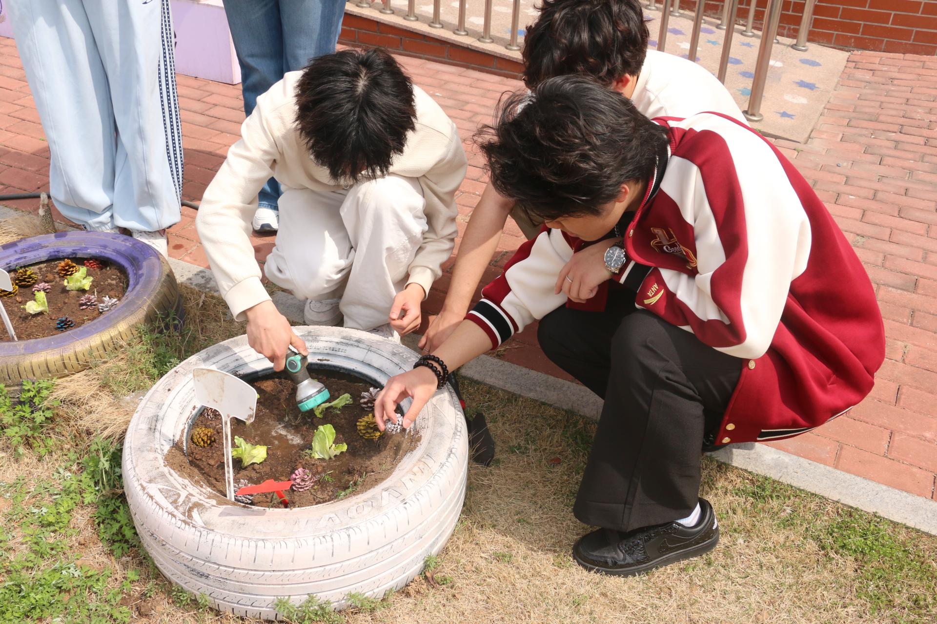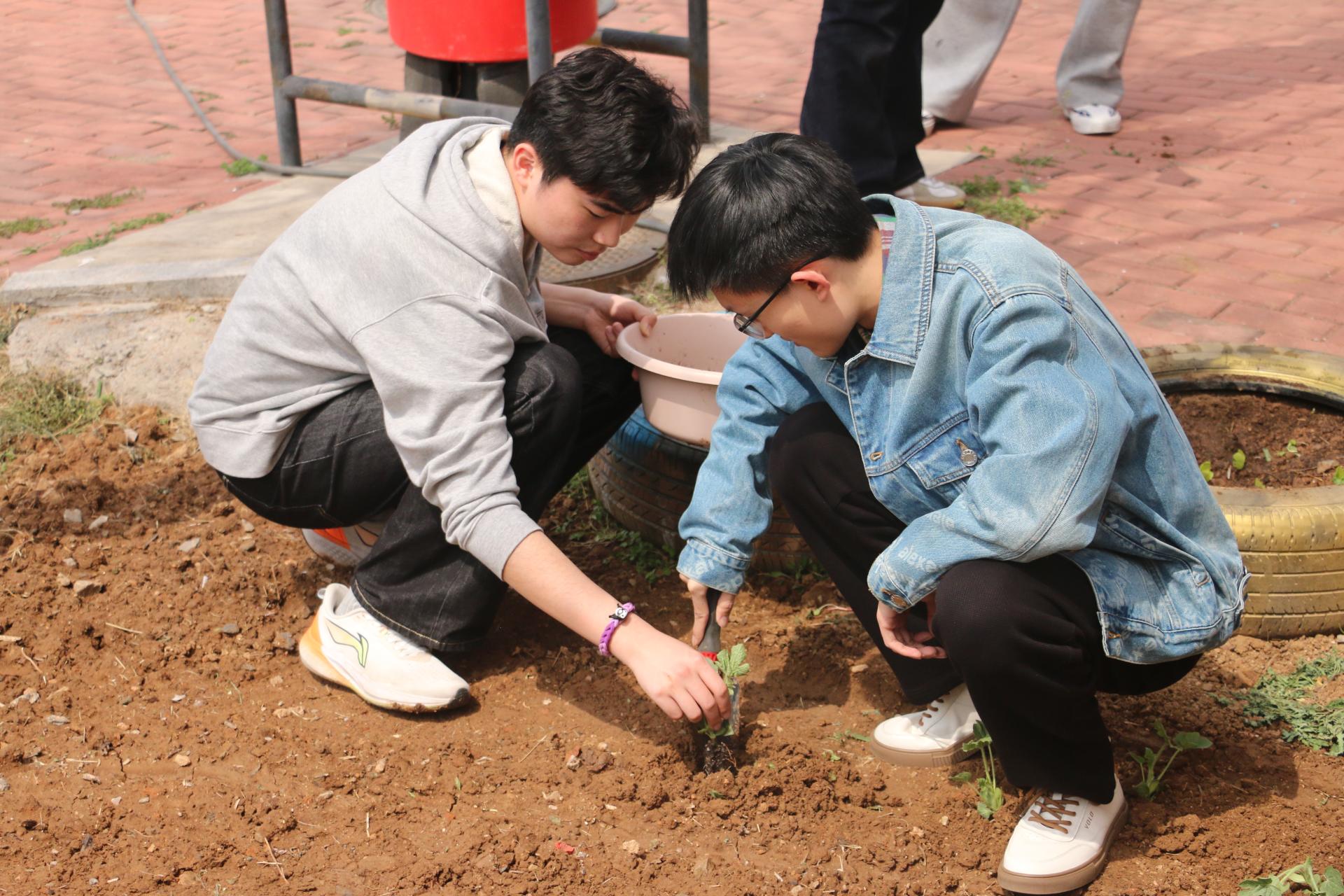 在劳动过程中,老师们与同学们紧密协作、配合无间。同学们在老师悉心的指导下,认真地进行翻土整地、播种浇水等操作,全神贯注地学习基本的种植方法和养护知识。他们用双手触摸土地,用汗水浇灌希望,在实际行动中深刻感受着劳动的价值与意义。习近平总书记曾深刻指出:“劳动教育是中国特色社会主义教育制度的重要内容,直接决定社会主义建设者和接班人的劳动精神面貌、劳动价值取向和劳动技能水平。要在学生中弘扬劳动精神,教育引导学生崇尚劳动、尊重劳动,懂得劳动最光荣、劳动最崇高、劳动最伟大、劳动最美丽的道理,长大后能够辛勤劳动、诚实劳动、创造性劳动。”此次活动正是对这一重要指示精神的积极践行,让同学们在劳动中领悟劳动的真谛,树立正确的劳动观念。